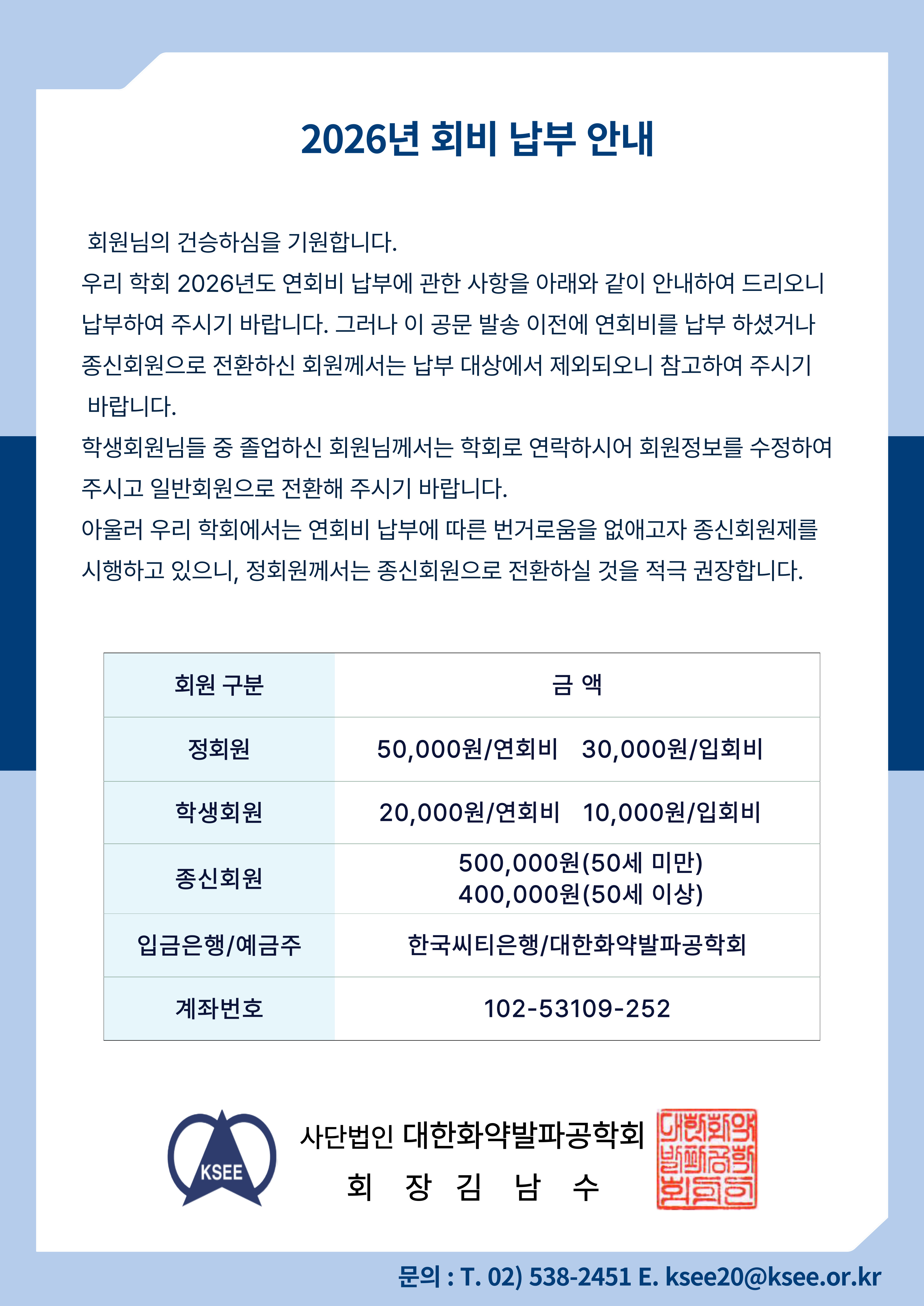 2026년 회비 납부 안내