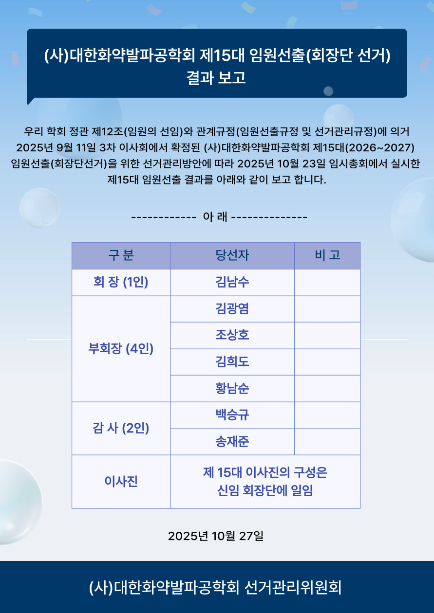 (사)대한화약발파공학회 - [제15대 회장단 선…