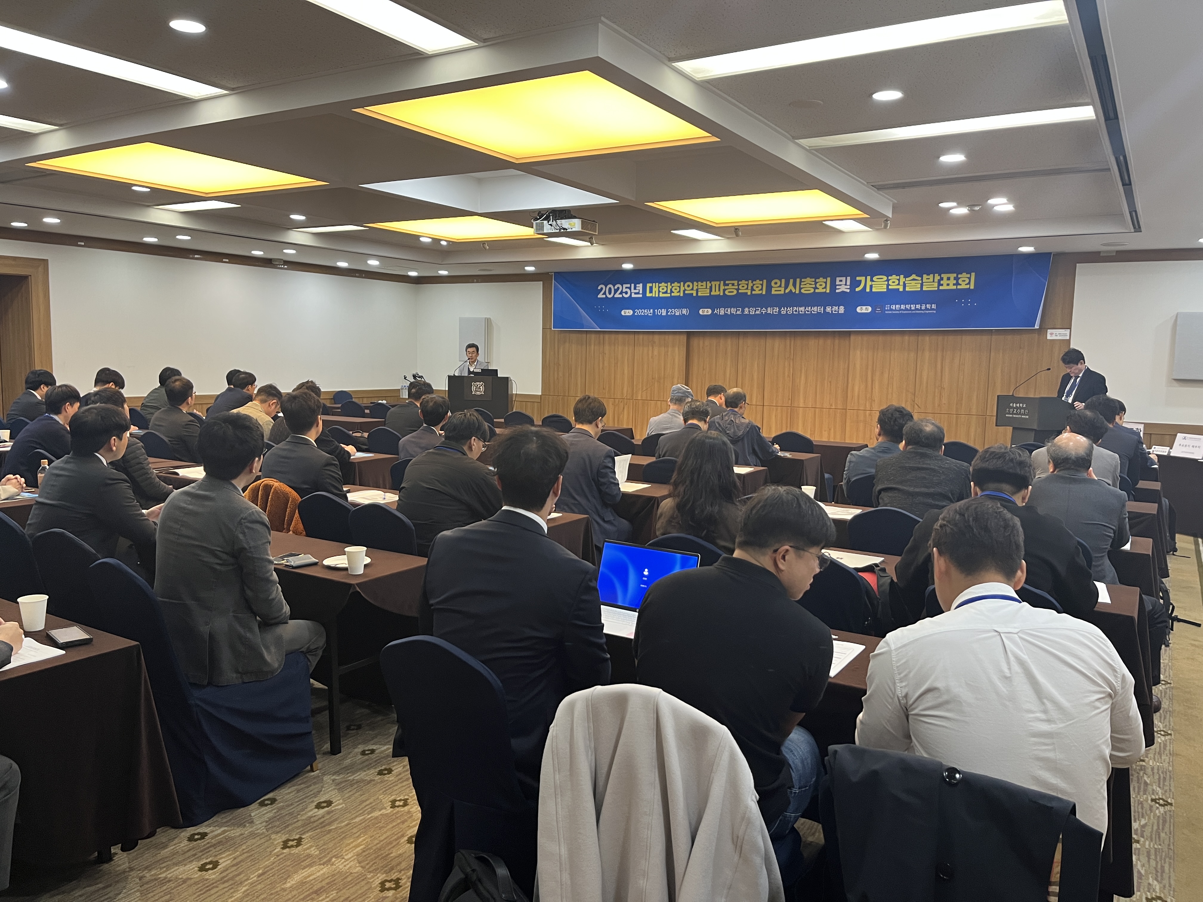 ▣ 2025년 임시총회 및 가을학술발표회 ▷ 일시 : 2025년 10월 23일(목) 10시 30분 ▷ 장소 : 서울대학교 호암교수회관 삼성컨벤션센터 목련홀 ▷ 특별강연 : 장원준(전북대학교/교수) ▷ 발표논문 : 9편 ▣ 가을학술발표회 수상자 ○ 학생 우수논문상 : 김영준(전북대학교) ○ 우수 발표논문상 : 김 식(엔케이기술사사무소)
